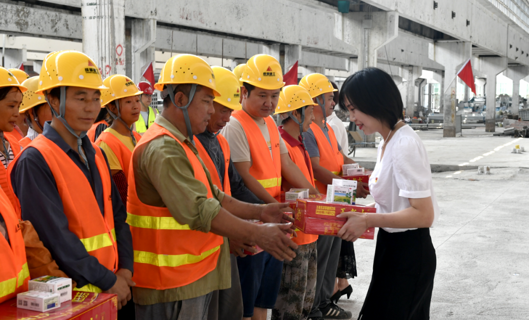 時(shí)值高溫季節(jié),為進(jìn)一步做好高溫作業(yè)職工勞動(dòng)保護(hù)和防暑降溫工作,有效預(yù)防中暑及生產(chǎn)安全事故的發(fā)生,確保廣大職工的身心健康,7月1日上午,市國資委,市文旅集團(tuán)黨委、工會(huì)赴項(xiàng)目現(xiàn)場開展了“我為群眾辦實(shí)事——情系一線職工,凝心聚力鼓干勁”夏日送清涼慰問活動(dòng),為長期堅(jiān)守在一線工作環(huán)境的職工送去了“清涼”和關(guān)懷。市國資委黨委專職副書記張雷,集團(tuán)黨委書記、董事長覃敏,集團(tuán)黨委委員、副總經(jīng)理朱太義,集團(tuán)黨委委員、財(cái)務(wù)總監(jiān)宋文,集團(tuán)黨委委員、工會(huì)主席陳金鳳參加了慰問活動(dòng)。