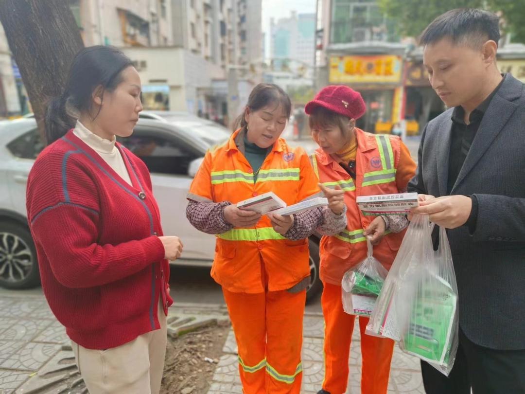 公司黨支部書記、副總經(jīng)理康仕海帶隊(duì)到集團(tuán)包聯(lián)社區(qū)南河街道為城市美容師環(huán)衛(wèi)工人送去家庭常備感冒藥、醫(yī)用防護(hù)口罩等物資,并詳細(xì)了解環(huán)衛(wèi)工人的生活狀況和家庭情況,囑托他們要保重身體,隨行執(zhí)業(yè)藥師為環(huán)衛(wèi)工人們提供了用藥指導(dǎo)、健康咨詢等服務(wù)。